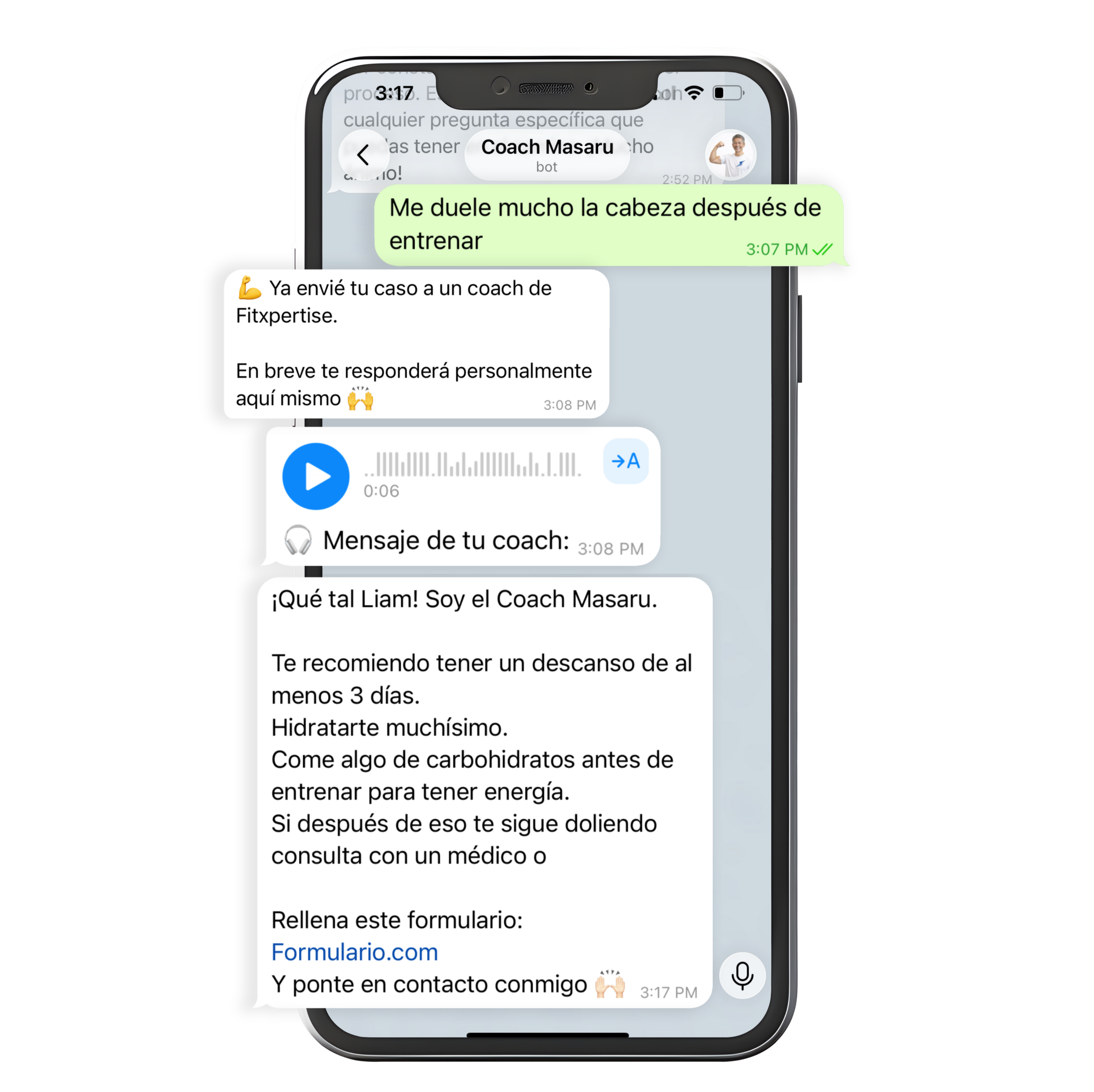 Chat con IA + Choaches reales te responden 24/7.